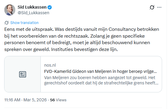 De FvD-politicus Gideon van Meijeren is in hoger beroep vrijgesproken van opruiing. Hieronder mijn duiding van de zaak.